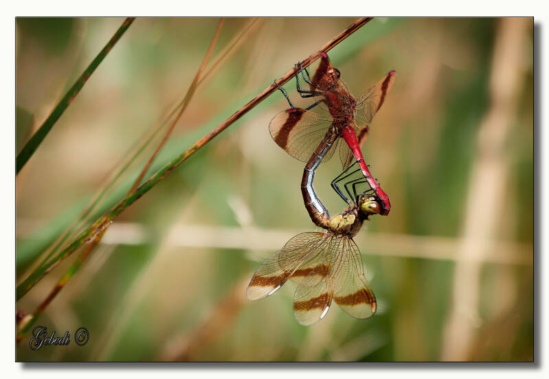 Op 6 en 7 september maar weer eens gaan zoeken of de zeldzame Bandheidelibel in Bakel te vinden was. En wie schets mijn verbazing dat ik samen met Bea er bijna 20 tegen kwam. En wat mij in al die voorbijgaande jaren nog niet gelukt was: paringswielen en tandems van deze soort. Had ik zelfs nog nooit gezien.