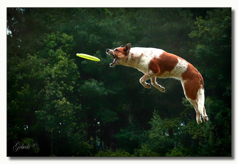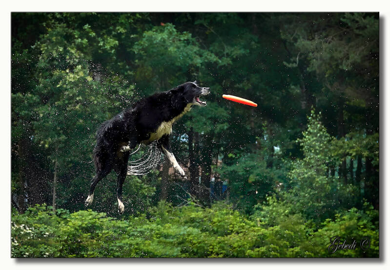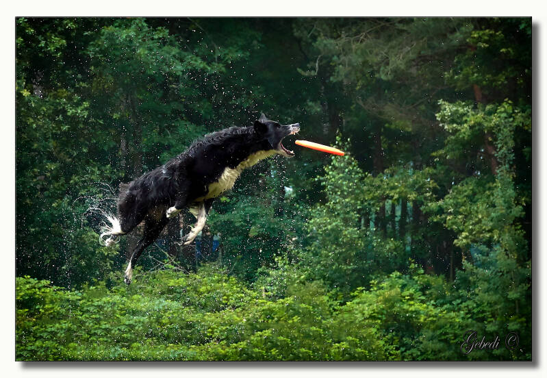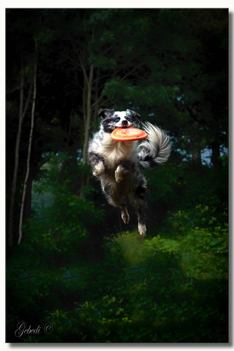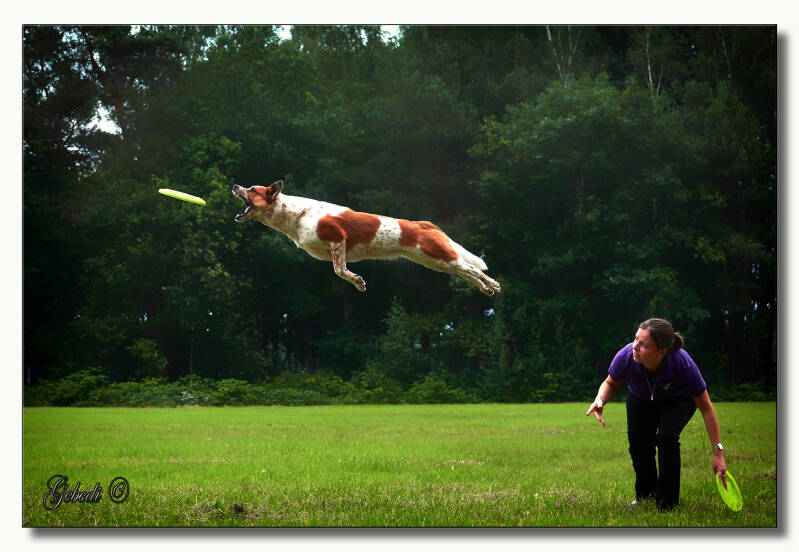 Knap hoe ze de hondjes aansturen en via hun rug de ruimte insturen en de frisbee gooien
