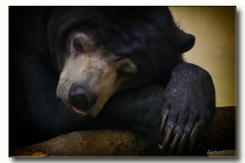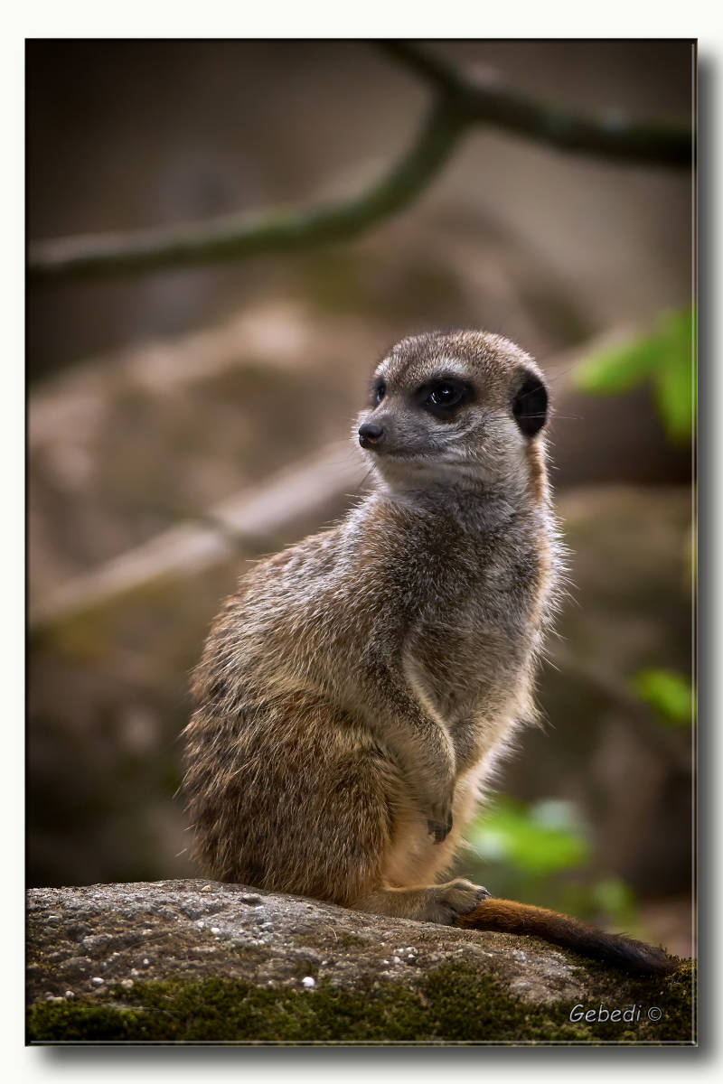 En ofschoon ik al vele foto's van de stokstaartjes had, kon ik het niet laten er nog een paar te nemen. De zwarte beer lag heerlijk te pitten en een Californisch kuifkwartel (v) was druk op zoek naar wat zaadjes.