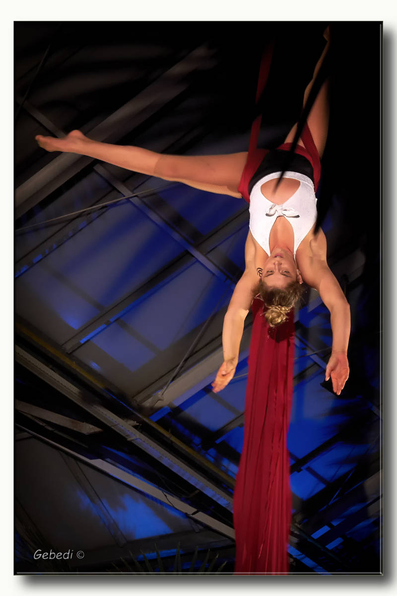 In de serre dit jaar elke avond een optreden van Hanne Coeckelbergs. De lichtomstandigheden waren beroerd en zijn bewoog razendsnel van boven naar beneden langs de linten. Met ISO 3200 en sluitertijden van 1/40 sec moet je dan een beetje geluk hebben om toch nog een redelijke foto te krijgen.