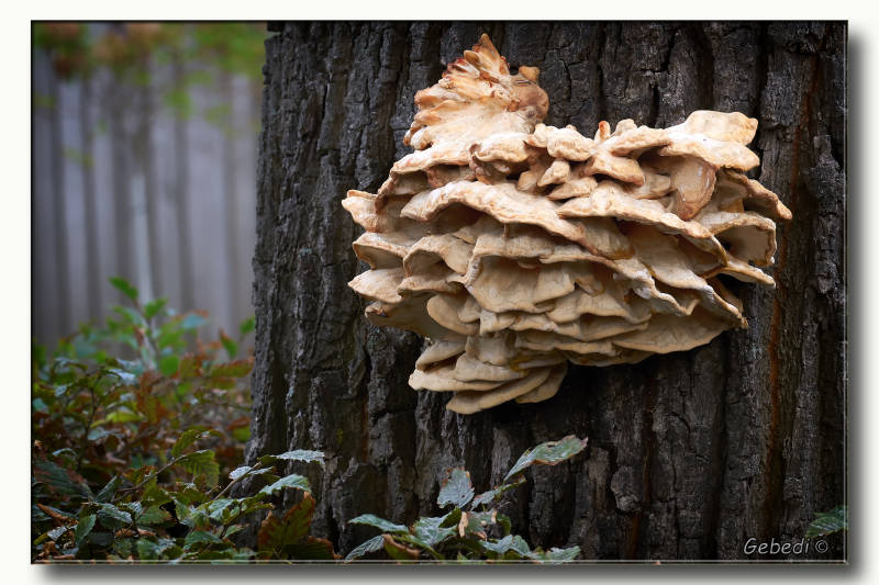En tegen een boom geplakt deze enorme paddenstoelen: de herfst komt eraan!