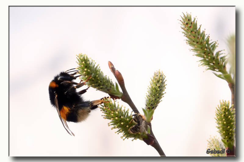 Een tweede bezoek aan dit gebied bijna een maand later gaf al weer een ander beeld. Niet dat het allemaal al groen aan het worden was, maar het leek alsof de natuur aan het ontwaken was. Vogels waren druk aan het kwetteren en de hommels waren aan het genieten van de uitlopende katjes.