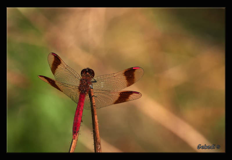 Boven: Kleine Parelmoervlinder en mannetjes van de Bloedrode Heidelibel