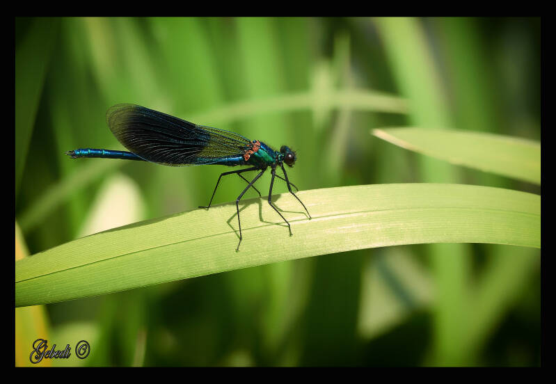 Hieronder de Blauwe Breedscheenjuffer en een Rietkruisspin