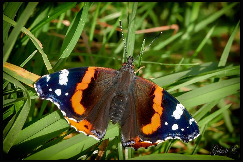 Boven: Atalanta, Icarusblauwtje, Gehakkelde aurelia