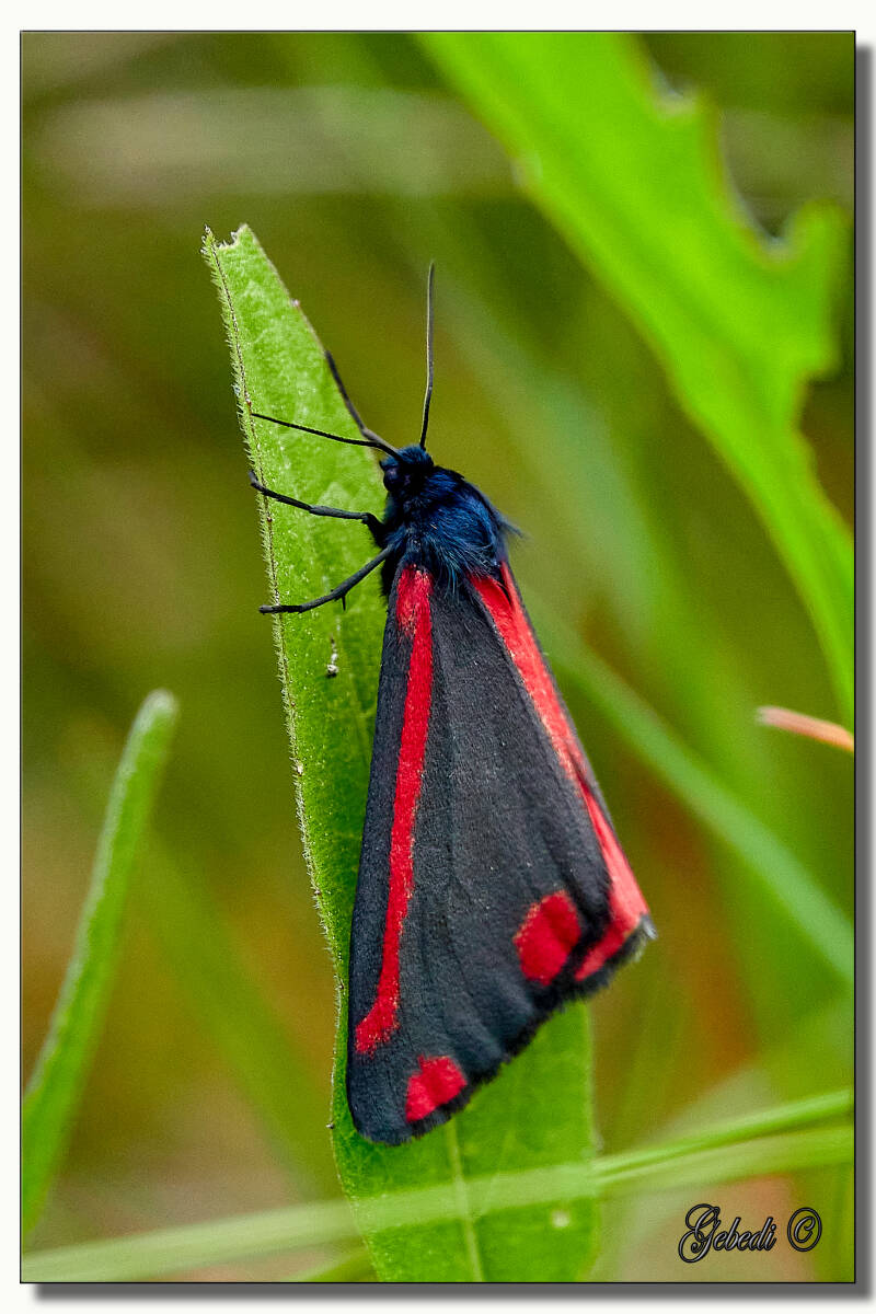 Onder: Driehoekeendagsvlieg, Viervlek, Zwart soldaatje, St. Jacobsvlinder