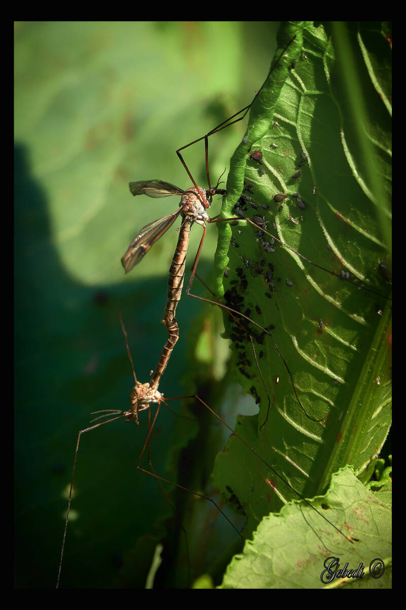 Boven: Mannetje Beekoeverlibel, Bruine Korenbout en Langpootmuggen die zich tijdens de paring tegoed deden aan bladluizen.