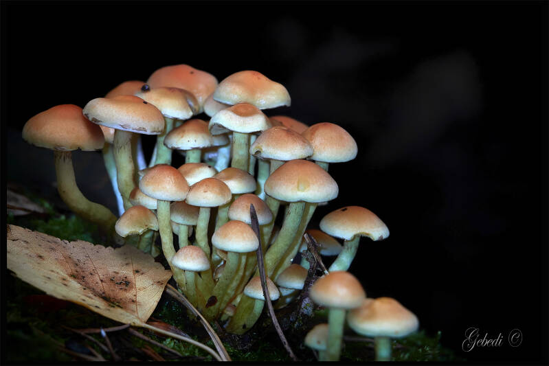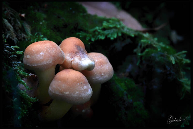 Boven: Gewone glimmerinktzwam, Gewoon elfenschermpje en Grauwe amoniet