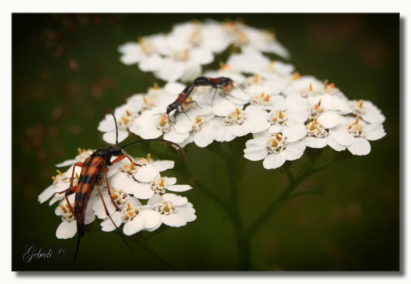 En ook volop spinkhaantjes zoals deze fraai gekleurde Krasser en verschillende boktorren zoals Gevlekte Smalboktor en de Slanke Smalboktor. Ook een Krompootdoodgraver wilde op de foto.
