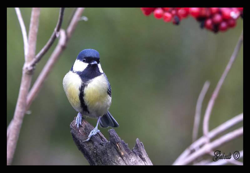 Onder: Roodborstje, Mus, Groenling en Koolmees