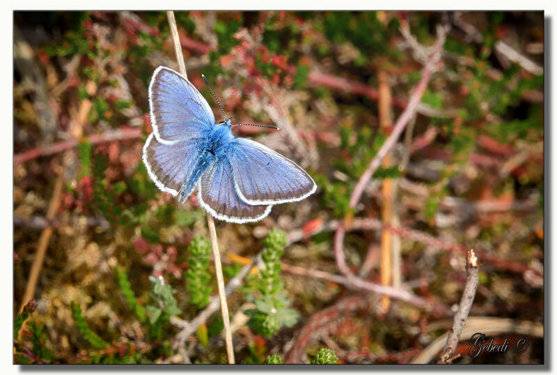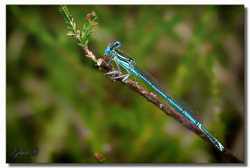 Onder: Klein geaderdwitje, Zuringspanner, Blauwe breedscheenjuffer m + v