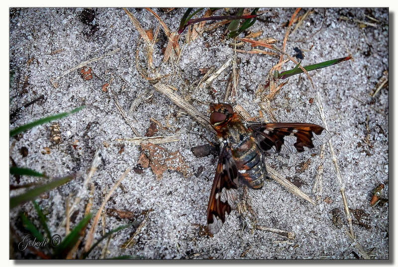 Boven: Citroenpendelvlieg, Roodbruine heiderouwzwever en Groene zandloperkever