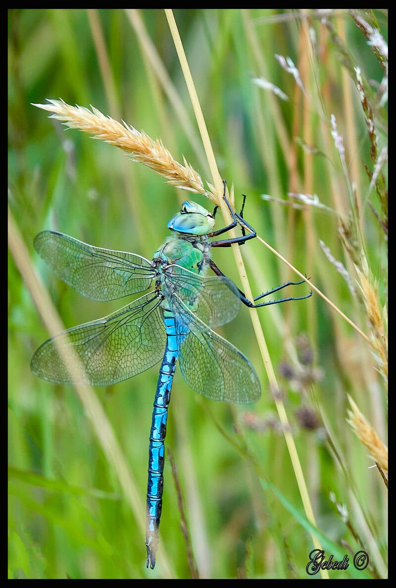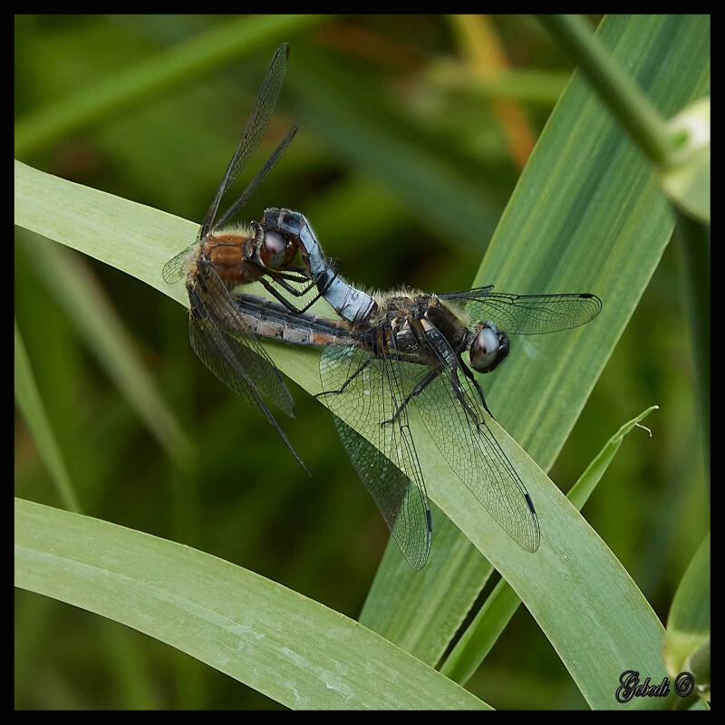 Boven: 2 maal Vuurjuffer en de Viervleklibel