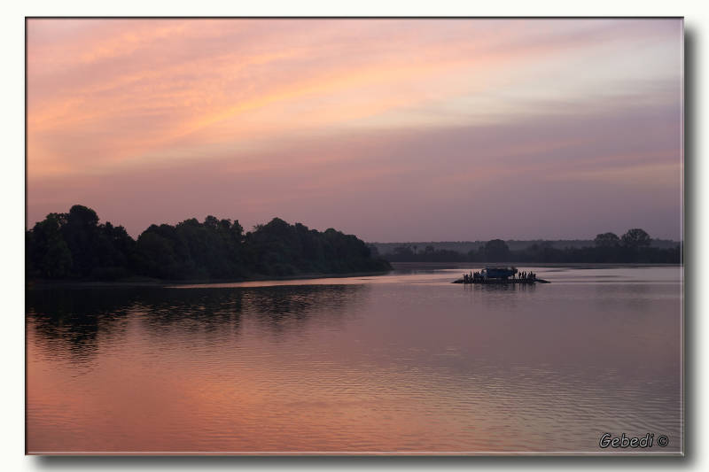 We moesten heel vroeg op want we hadden een lange reis voor de boeg. Het eerste licht zorgde voor deze prachtige foto van het al overstekende pontje.
