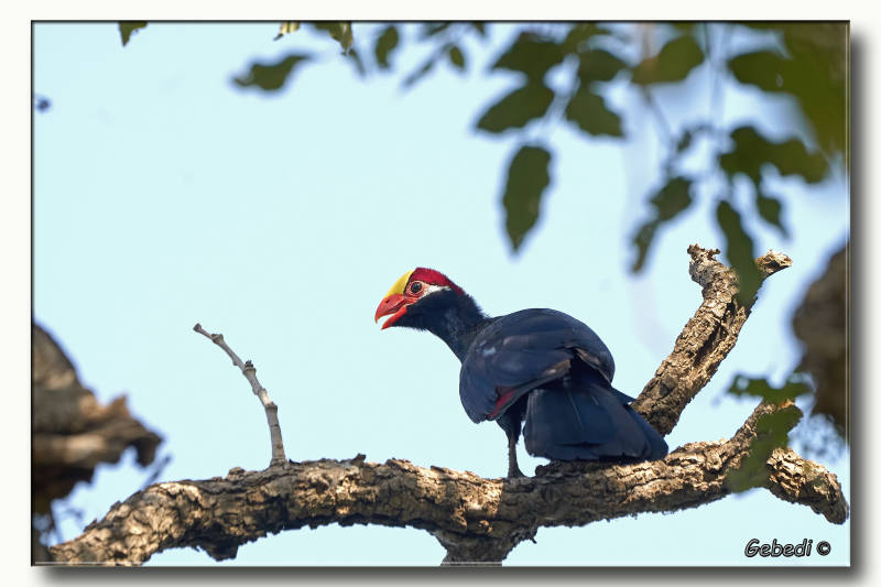 En dan vlakbij in een boom de Baardvogels en de Violette Toerako