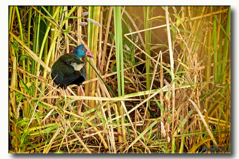 Verscholen in het gras een Purperkoet, de African Tiger vlinder zat er volop en ook een aantal andere soorten libellen. Een roofwesp moest er ook aan geloven.