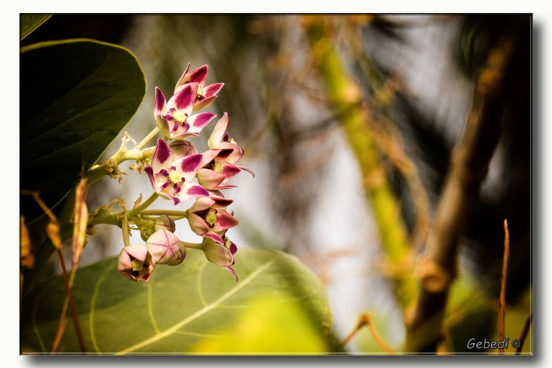 Daarnaast de bloeiwijze van de Calotropis gigantea, een plant uit de maagdenpalm familie.