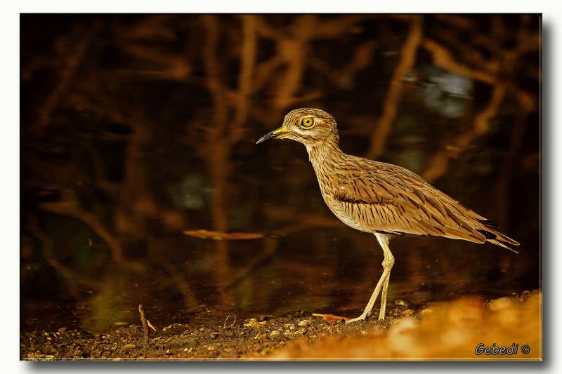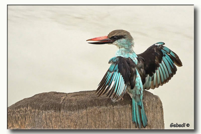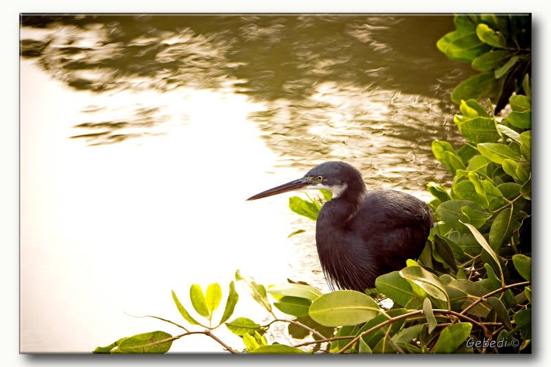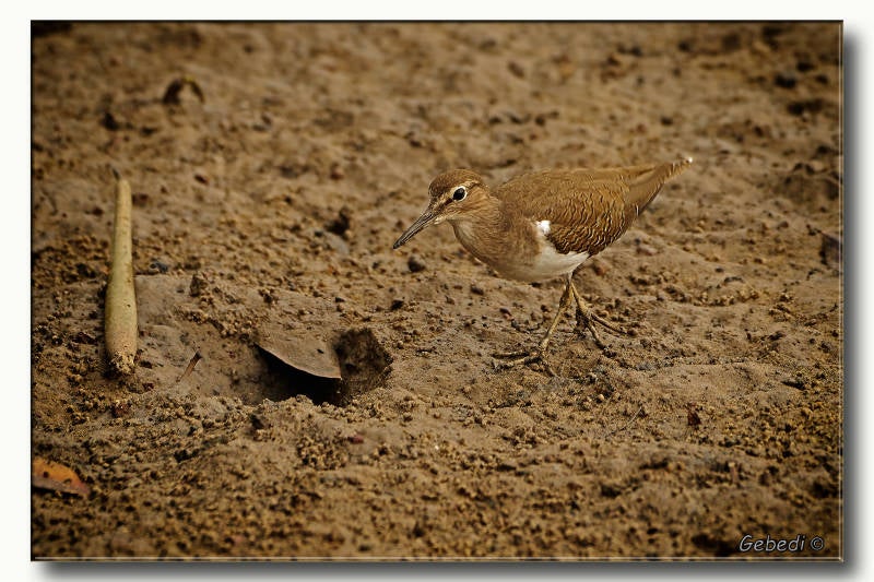 Bij eb trekt het water zich terug en kwam een groot deel van de mangroven droog te staan. Ideaal natuurlijk voor de vogel om op zoek te gaan naar wormen en larven van insecten. Zoals de Groenpootruiter en de Senegal Griel. Op een takje zat eigenlijk net iets te ver weg een Malachite ijsvogeltje.