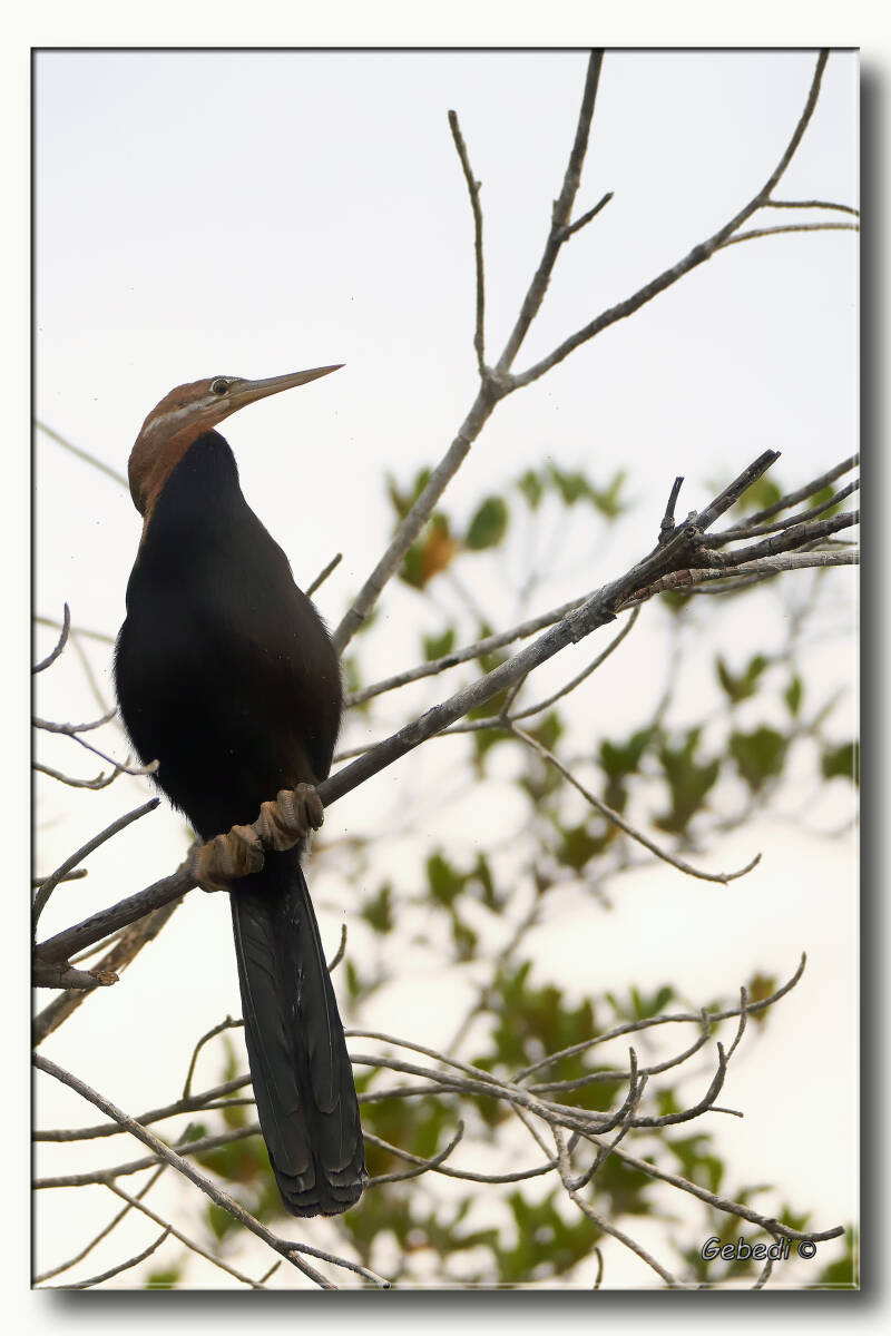 Het was laag water en regelmatig liepen we vast in de modder. De Afrikaanse Rifreiger was druk aan het vissen, terwijl de Slangenhalsvogel zat uit te rusten en zijn verenkleed in orde aan het maken was.