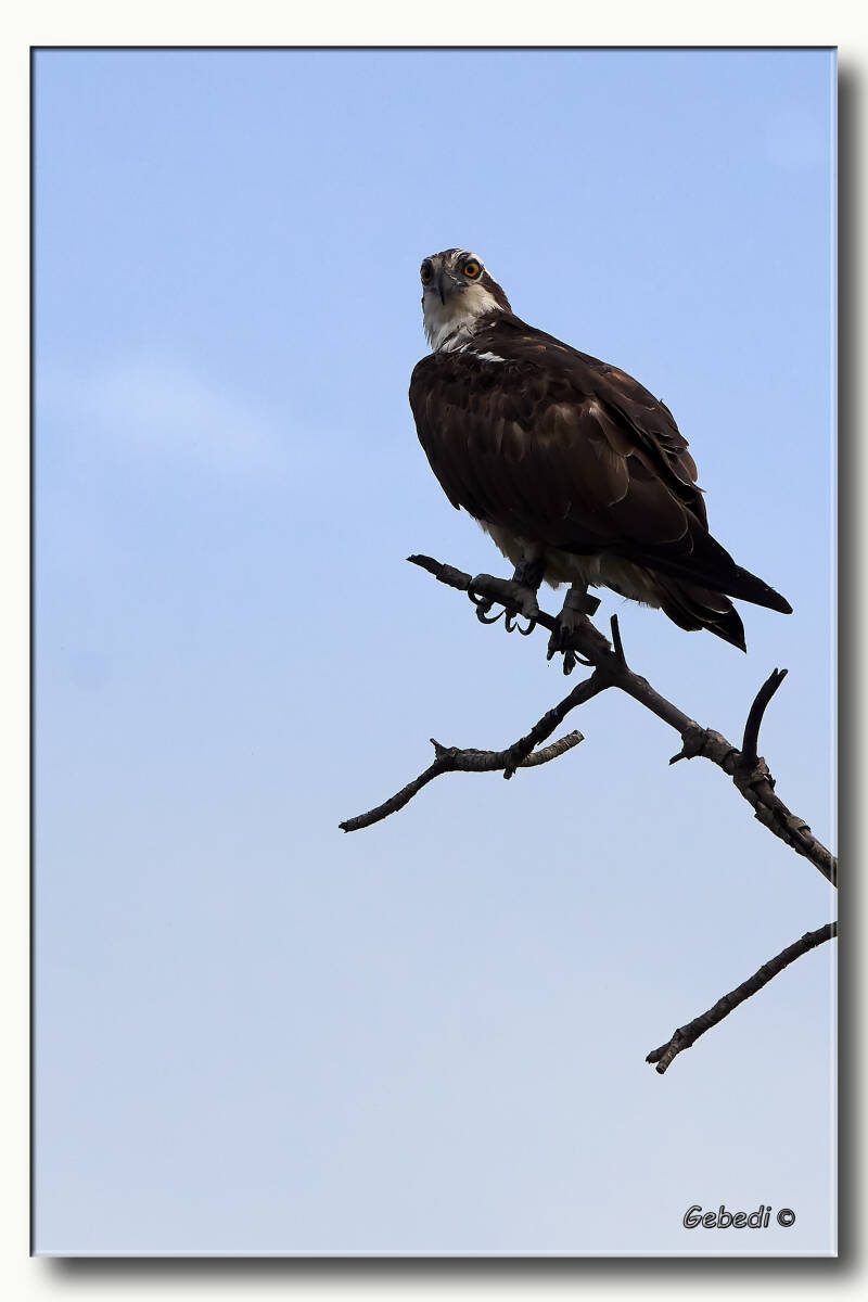 Een visarend zat hoog in een boom de omgeving in de gaten te houden en had weinig belangstelling voor ons. Jammer genoeg ging hij niet op jacht om bijvoorbeeld voor onze neus een flinke vis uit het water te slaan.