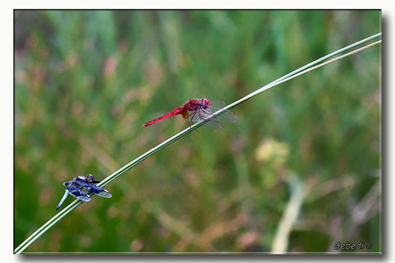 Mannetje van de Portia Widow – Palpopleura portia en boven de Red Basker – Urothemis assignata