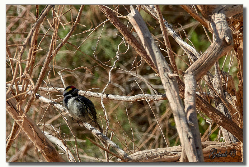 Iets verderop even een lunchpauze met de camera in de hand. In een struik zat een Acasia pipe barbet en Orangeriver whiteeyes.