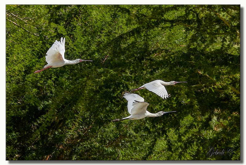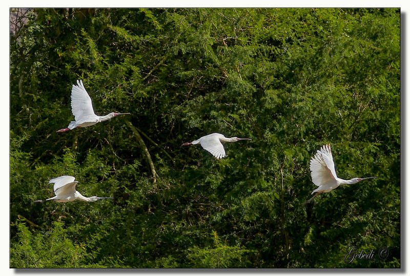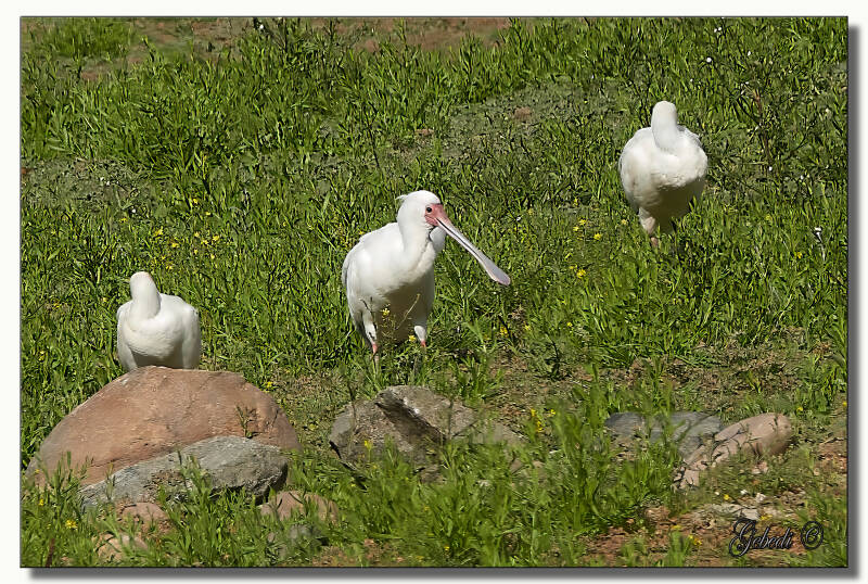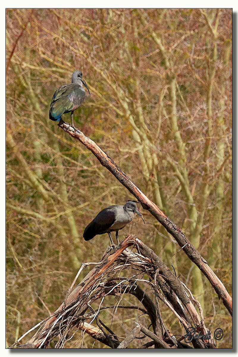 Een stukje verder stopten we direct toen we een groepje African lepelaars zagen samen met Hadada ibissen en een Tree banded plover.