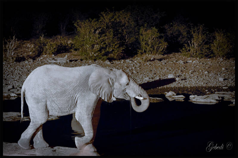 Eén van de plekjes die je zeker moet bezoeken als je in het Halali camp bent is de schaars verlichte waterhole
