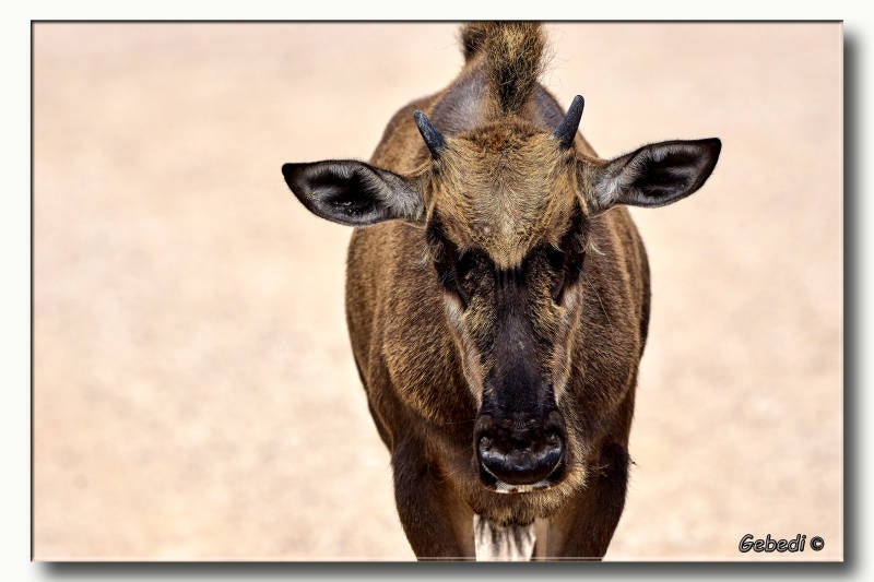 En dan een fotoshoot van een jonge gnoe, die keurig alle kanten liet bekijken.