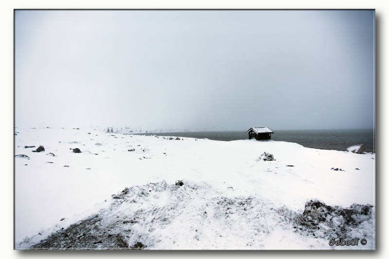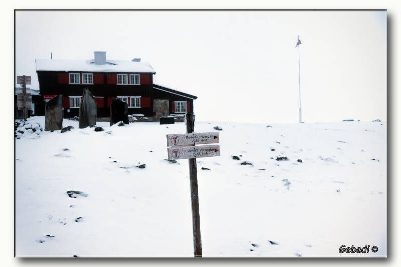 We zijn met de bus door het park naar het eindpunt gereden en daar uitgestapt. Daar was weinig te zien vanwege de laaghangende bewolking en de dwarrelende sneeuw die met een enorme snelheid over en langs ons gierde. Wat was ik blij met mijn jas, handschoenen en thermisch ondergoed.