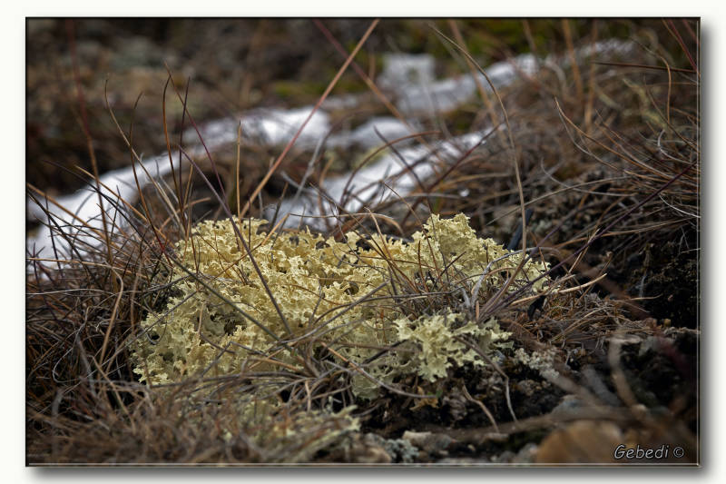 Hoe verder we na het maken van de foto's van de muskusossen naar beneden liepen hoe meer planten er door het sneeuwdek kwamen.