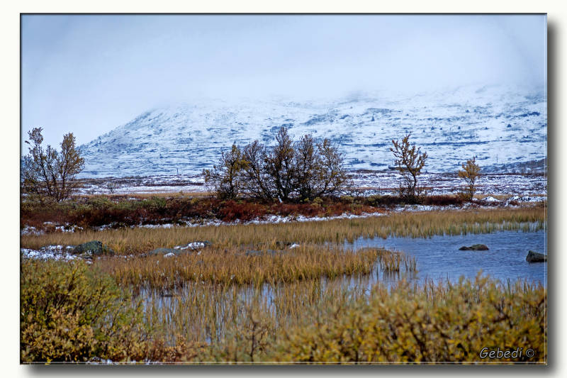 Zo reden we door het Rondane Nationaalpark en tot onze grote verbazing lag er sneeuw. Dat beloofde nog wat voor de komende dagen. Uiteraard zijn we hier regelmatig gestopt om wat foto's te maken. Voor mij de eerste kennismaking met Noorwegen.