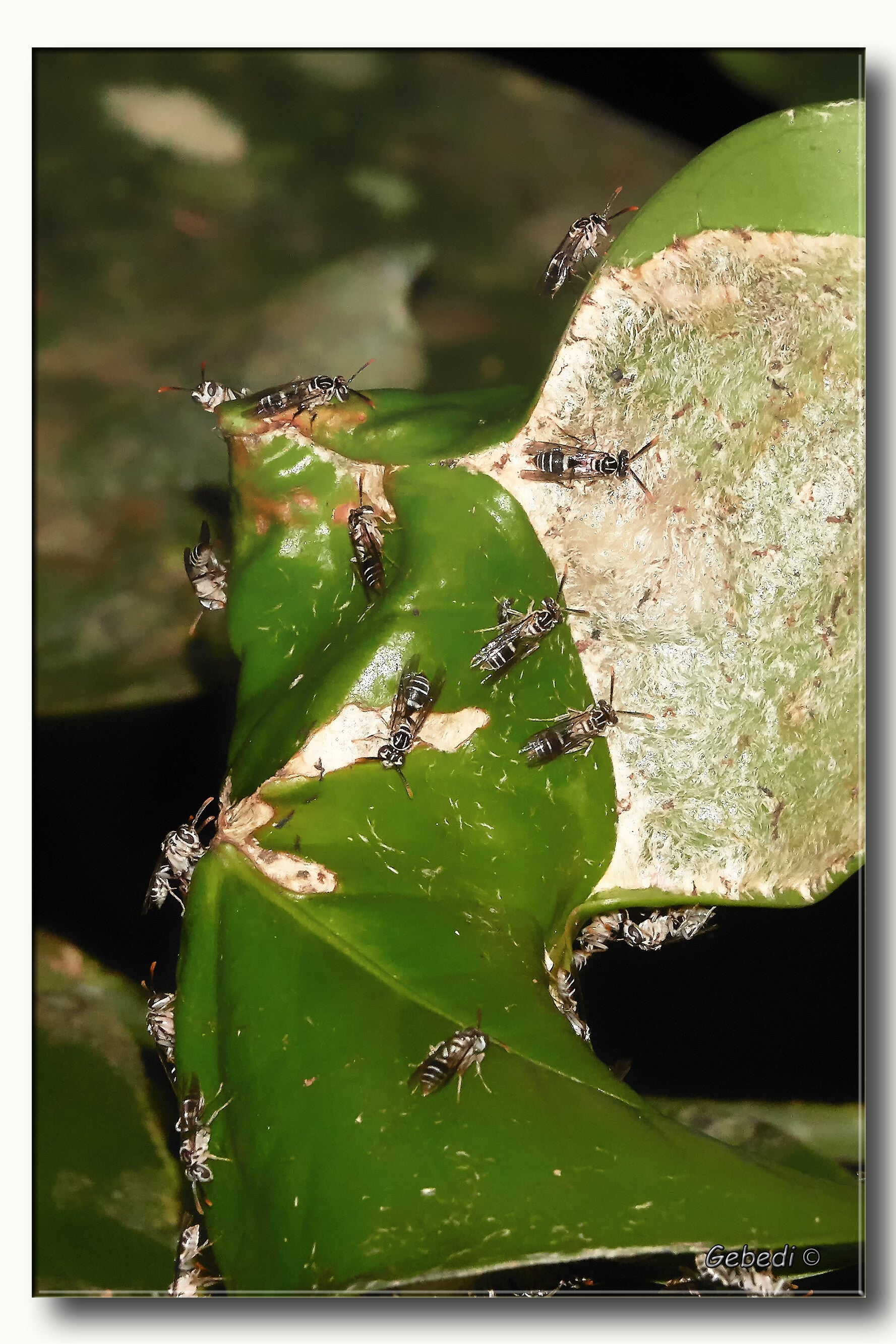 Ook zo'n lekker ding om in het donker tegenaan te lopen. Heel voorzichtig een foto gemaakt om ze niet te storen want je weet het maar nooit met die steekinsecten.