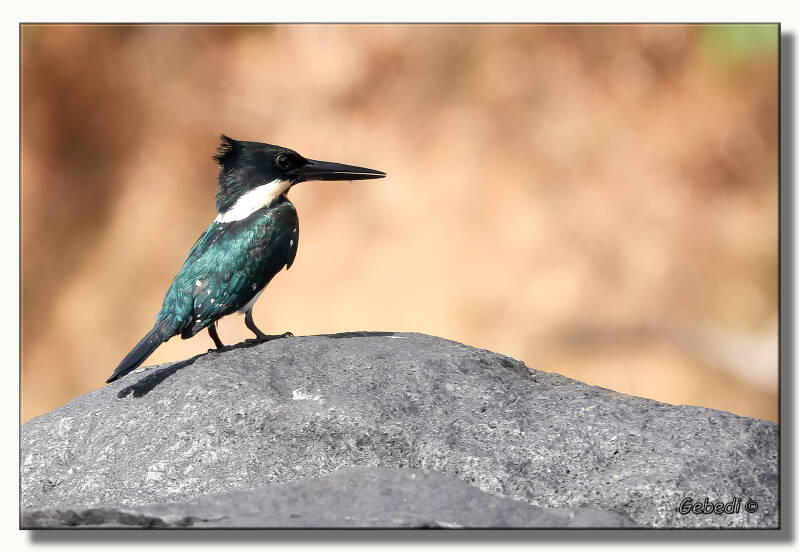 En na een goede lunch en een stuk kreek onderzoeken weer op de terugweg. Het leek af en toe wel een wedstrijd en dan vooral om niet vast te lopen. Zo kwamen Mattias en ik bij een rots waarop een Green Kingsfisher (f) voor ons poseerde. De andere twee zaten nog vast op de rotsen.