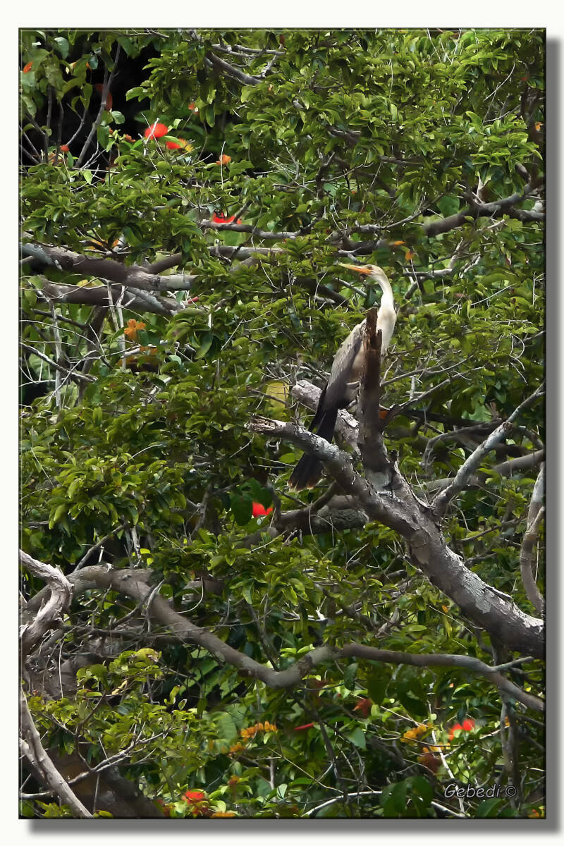 Langs de oever zagen we een slangenhalsreiger en even verderop een aantal Grote ani's (Crotophaga major)