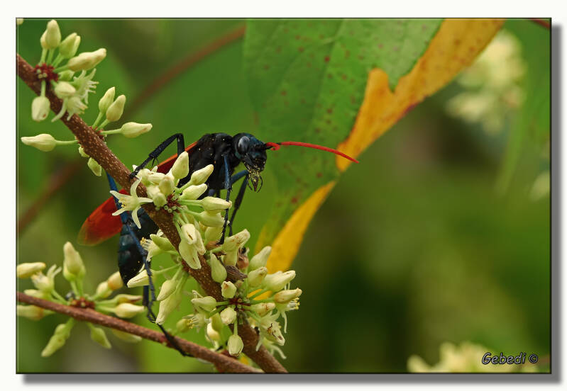 Tarantula hawkwasp. Voedt zich met nectar (vandaar die vreemd gevormde bek) en leg zijn eitjes in een spin die hij eerst verdoofd.