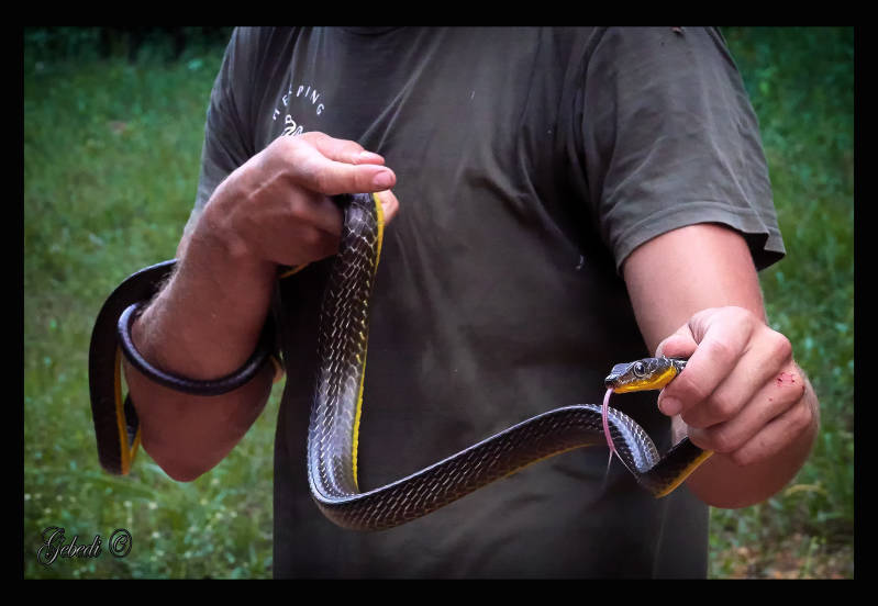 Op de terugweg op het pad bij de lodge heeft Dick nog een slangetje (Chironius multiventris) gepakt en dus weer foto's!