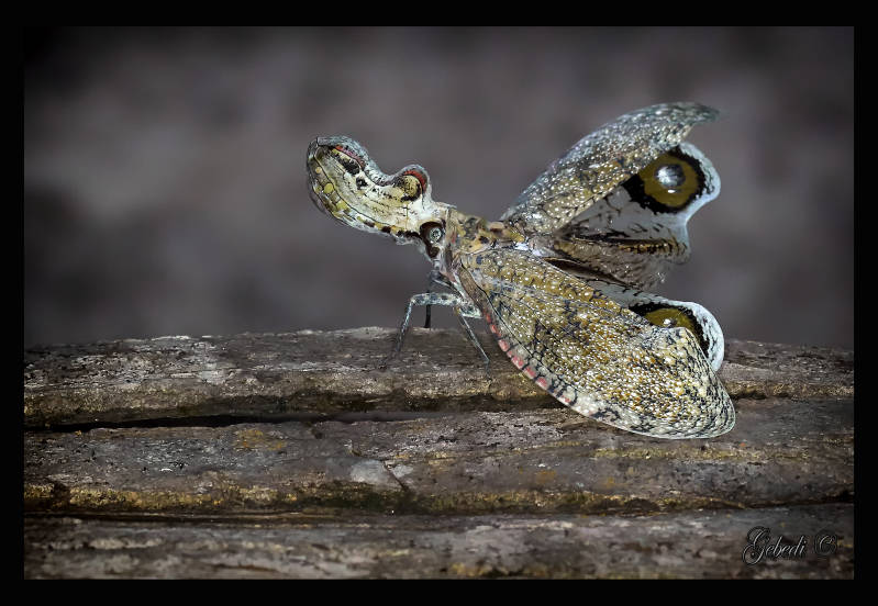 Op het eerste gezicht leek dit een prachtig grote nachtvlinder. Bij nader onderzoek bleke het een cicade, maar verder dan een familienaam kwamen we niet: Fulgora spec. En waar de uitbouw van de kop voor diende was helemaal een raadsel.