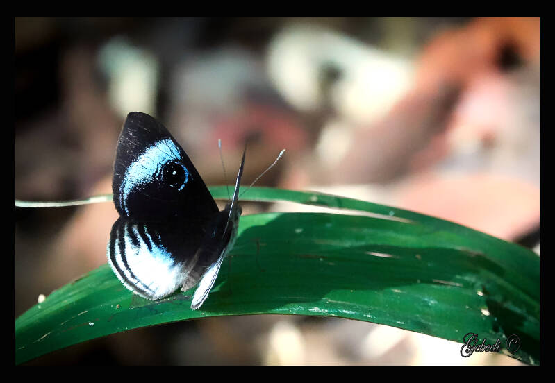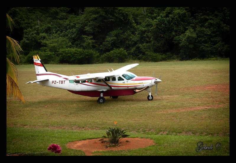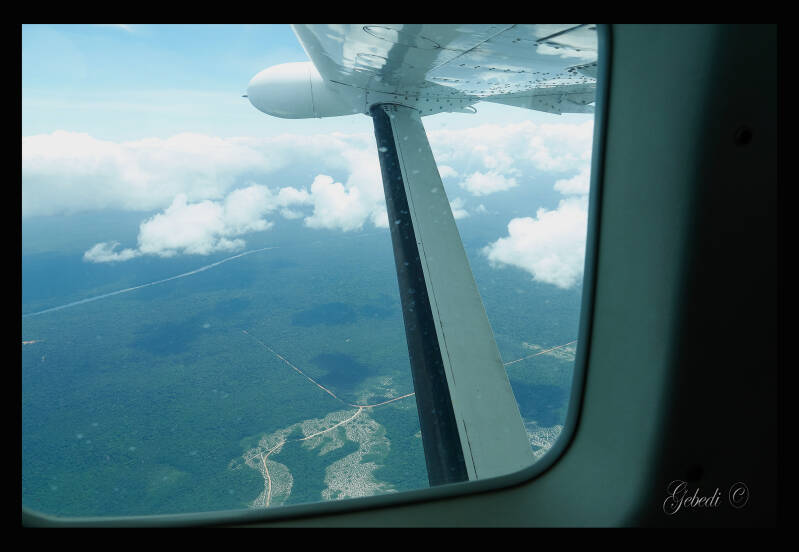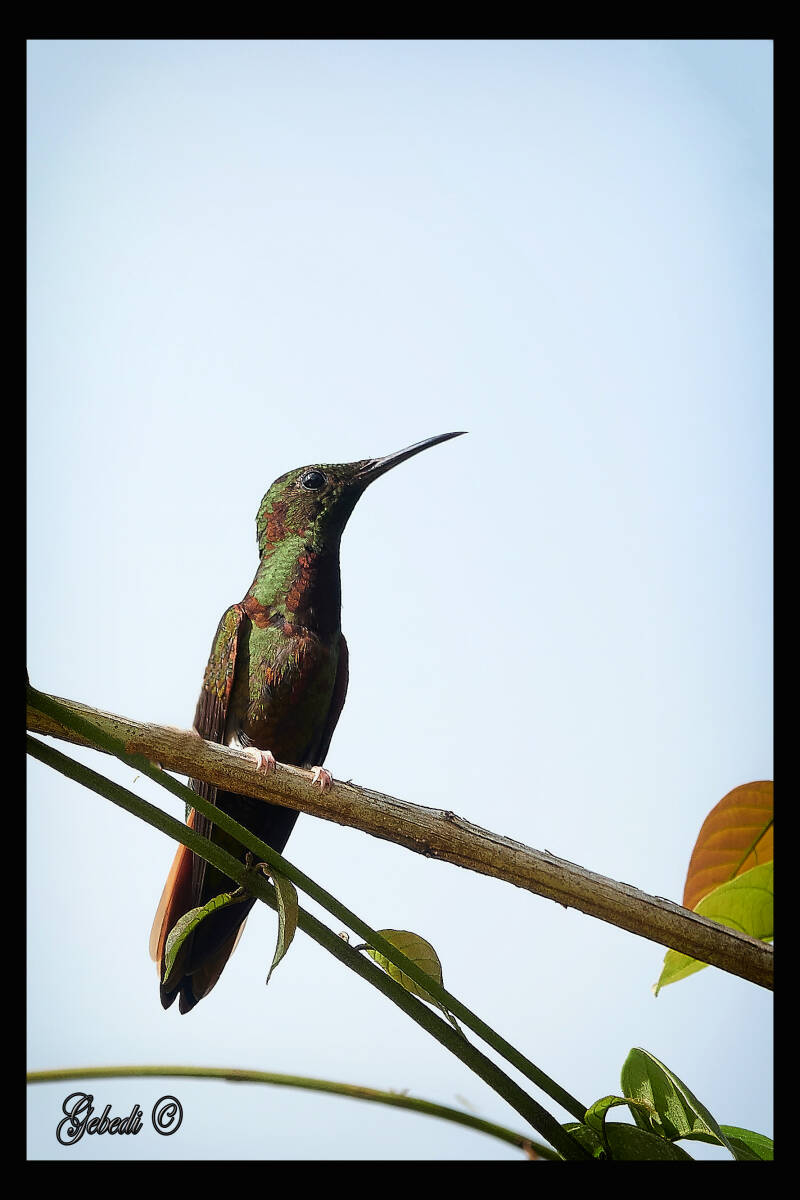 Nog even een wandelingetje door het oerwoud naar de rivercabins. In de struik met de apenborstels toch nog de kolibrie Crimson Topaz kunnen fotograferen. Weliswaar niet helemaal op kleur, maar toch .....