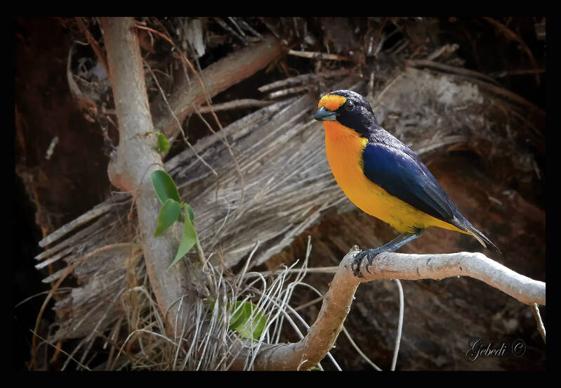 In een palm bij een van de cabins was een paartje Violaceous Euphonia's bezig met het bouwen van hun nestje.