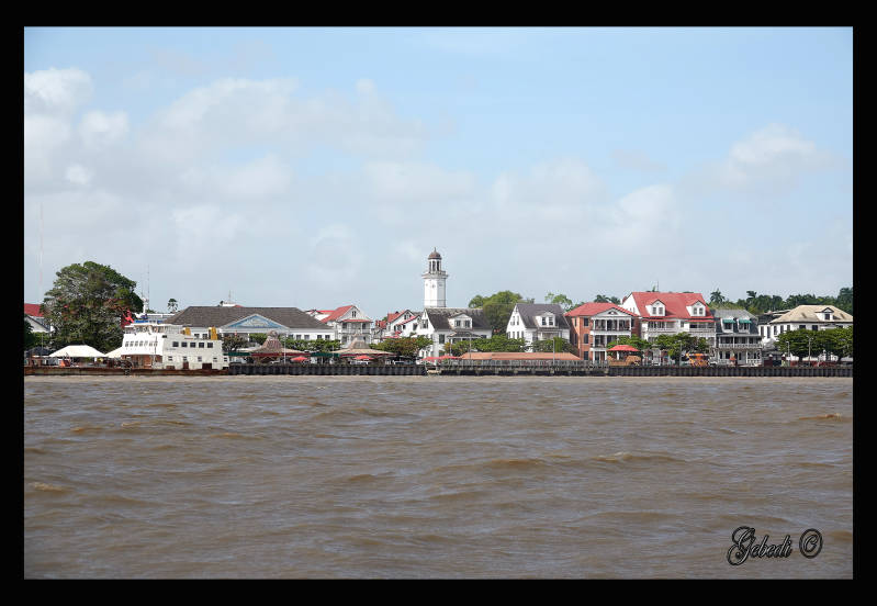 We wilden in Paramaribo gaan lunchen, maar om dit om half vijf te gaan doen was toch te gek. Daar het aanleggen en uitstappen ook nog wel eens een probleem kon worden, besloten we door te varen naar Sutopia, Peperpot.
