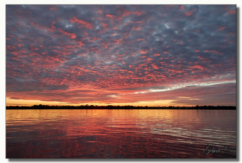 Deze hele relaxte dag begonnen nog in het donker met onze derde poging om de Hoatzin te spotten. En we zaten in het bootje om de zonsopgang te kunnen meemaken. Ochtendrood is water in de sloot, maar niet meteen.