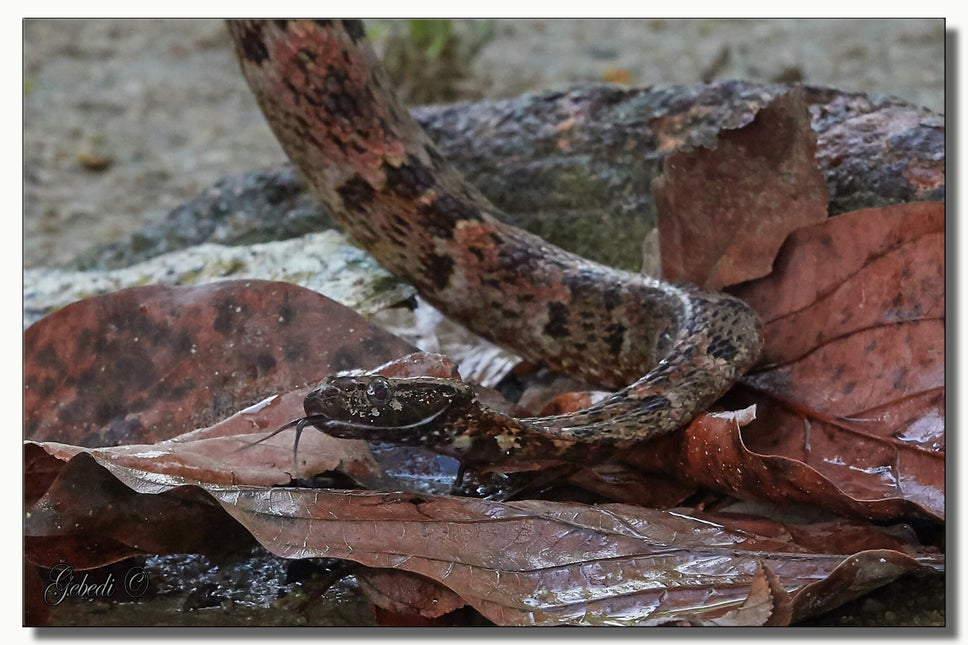 (Dick Lock) Voor deze mooie verkeerde Fer-de-lance (Xenodon rabdocephalus) kreeg hij een berichtje om te gaan bekijken. Zoals de naam doet vermoeden krijg je de suggestie dat deze heel erg op de zeer giftige Fer-de-lance/Labaria (Bothrops atrox) lijkt.