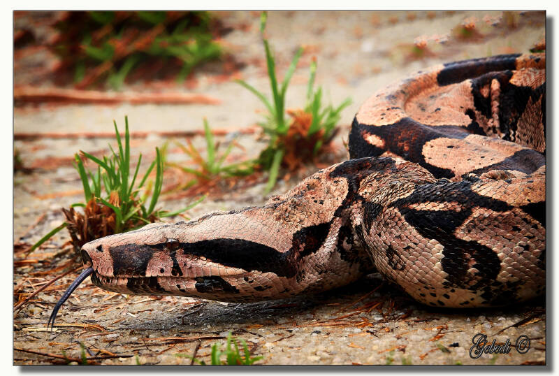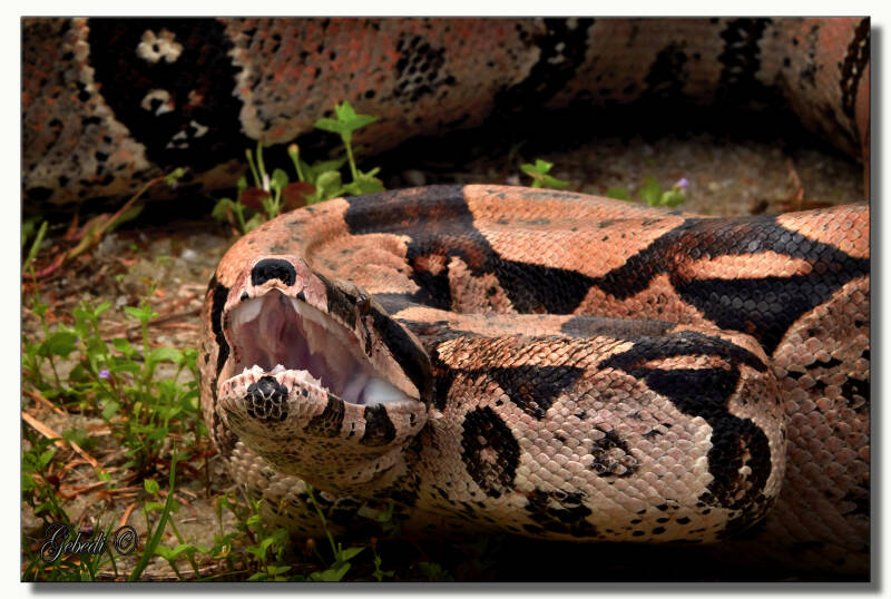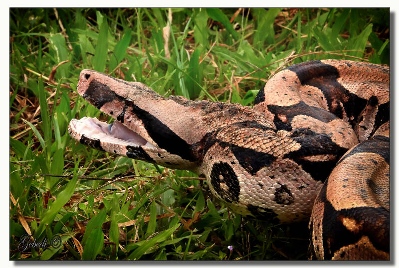 Daar lag onze eerste grote verrassing: een grote Boa contrictor klaar voor een shoot en door Dick Lock, onze geweldige gids deze weken meegebracht.