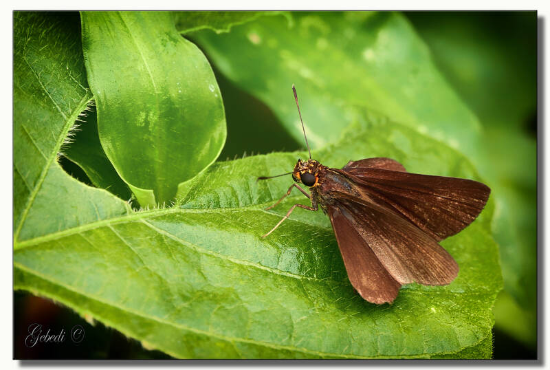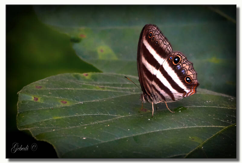 Glittering-throated Emerald, Haetera piera en Pareuptychia ocirrhoe