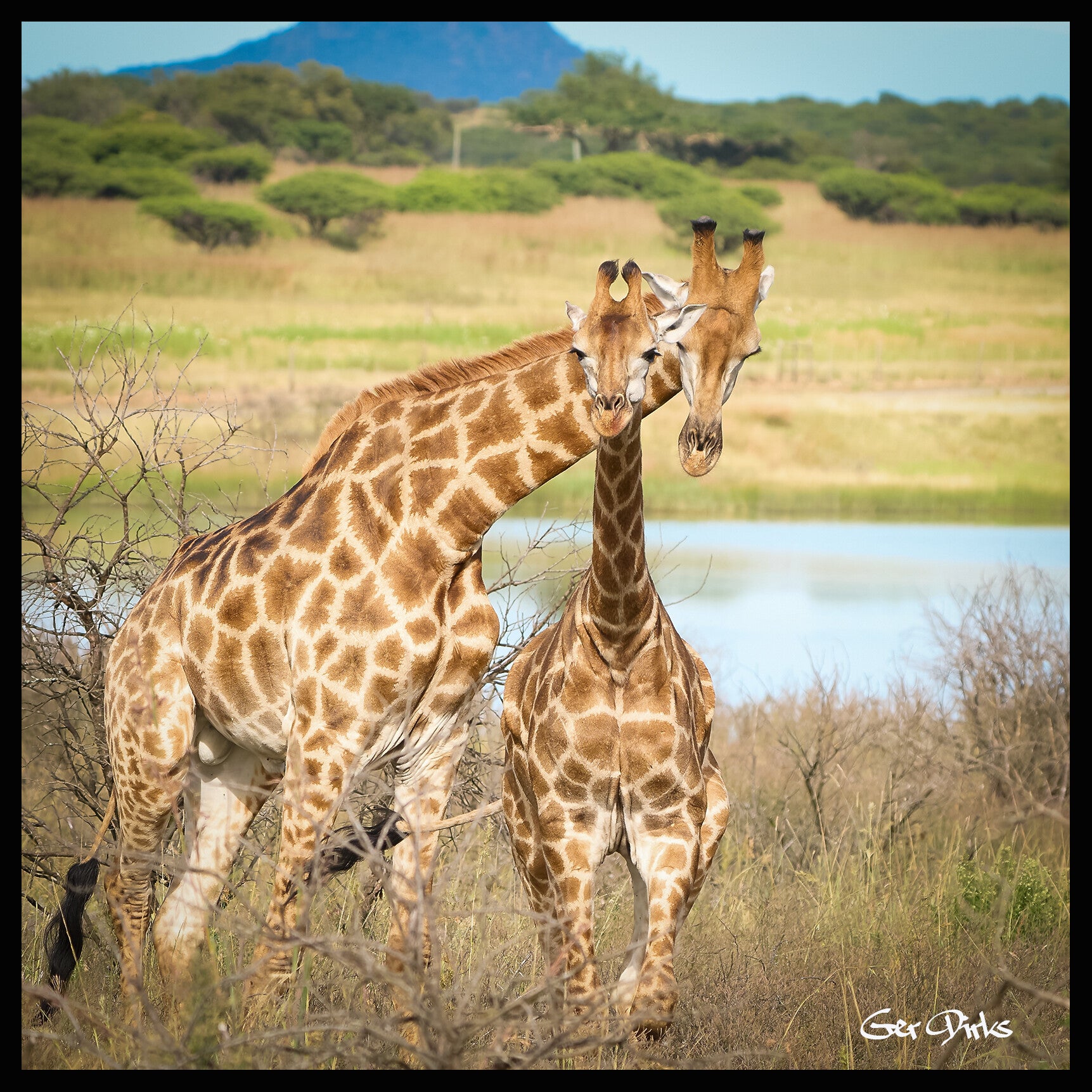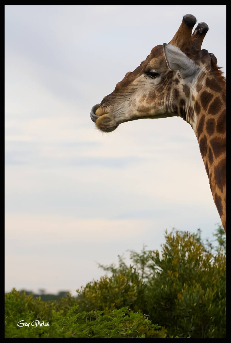 In het ochtendlicht zagen we in de verte een kudde Gnoes en kwamen we een aantal Giraffen tegen.